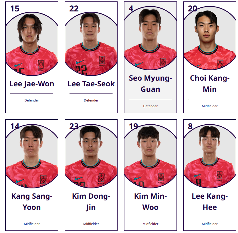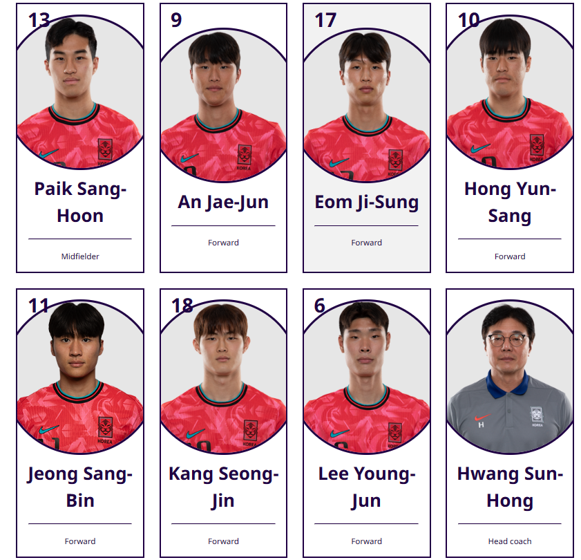 다만 이번 대표팀 명단을 보면서 아쉬운점으로는 양현준, 김지수, 배준호 선수가 해당 소속팀의 차출 비협조로 인하여 아시안컵에 합류하지 못하였는데요. 그래도 지난 U20 월드컵에서 좋은 성적을 거둔 강상윤, 강성진, 이영준이 포함되어 있는 만큼 나름 기대를 해도 좋겠다고 생각합니다.