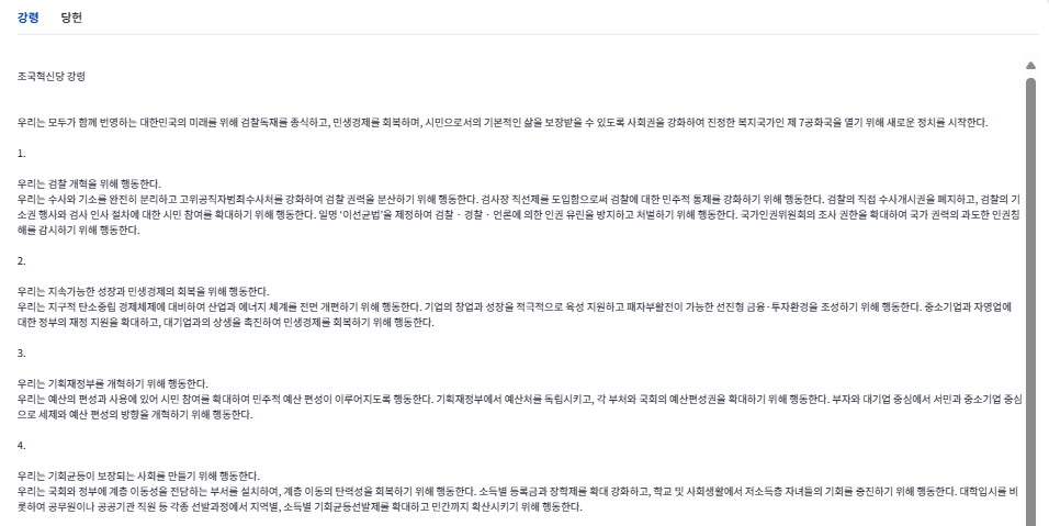 조국혁신당의 최우선 과제인 검찰독재 조기종식을 통해 대한민국 정부에 대한 국민의 신뢰를 되찾고 국민들 삶에 안정감을 돌려드리겠다는 의지를 담고 있다고 하는데, 과연 조국혁신당의 행보는 어떻게 될지 기대됩니다.